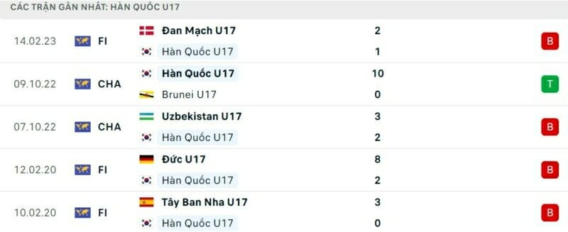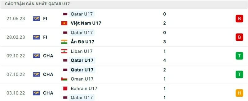 Thành tích đối đầu U17 Hàn Quốc vs U17 Qatar: