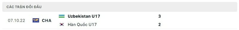 Thành tích đối đầu U17 Hàn Quốc vs U17 Uzbekistan: