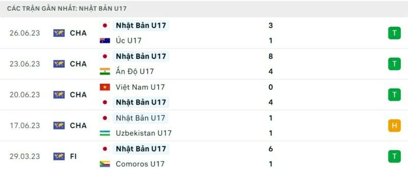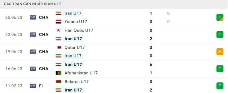 Phong độ gần đây U17 Iran vs U17 Nhật Bản: