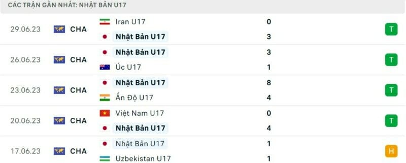 Phong độ gần đây U17 Nhật Bản vs U17 Hàn Quốc: