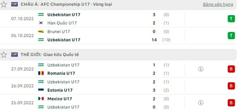 Phong độ gần đây U17 Nhật Bản vs U17 Uzbekistan: