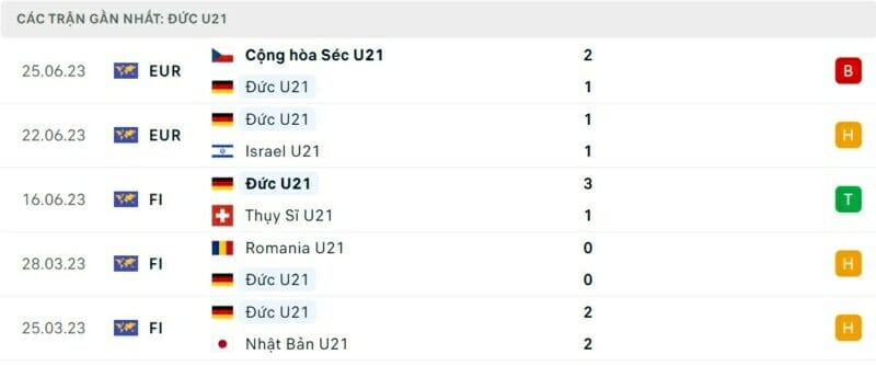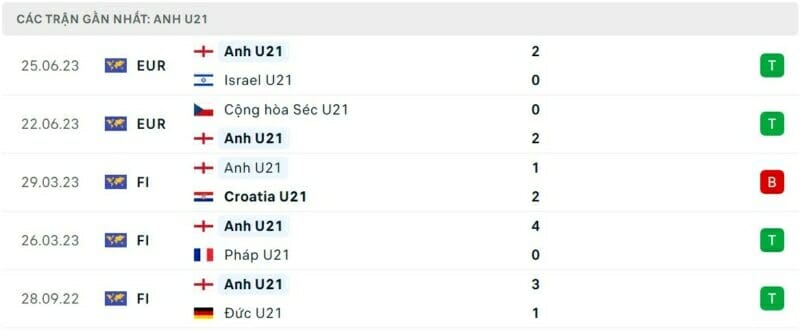 Thành tích đối đầu U21 Anh vs U21 Đức