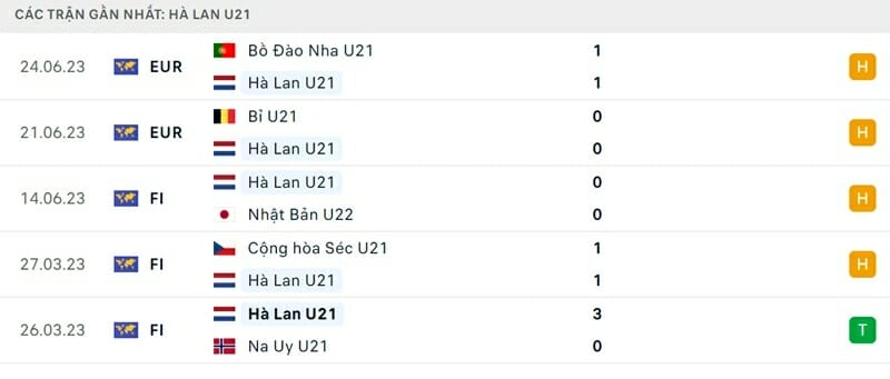 Phong độ gần đây U21 Hà Lan vs U21 Georgia: