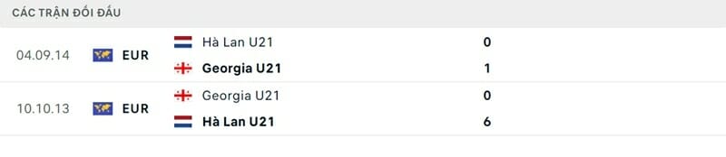 Thành tích đối đầu U21 Hà Lan vs U21 Georgia: