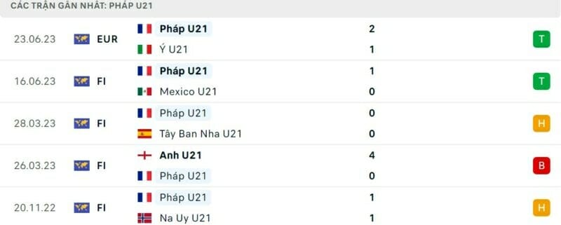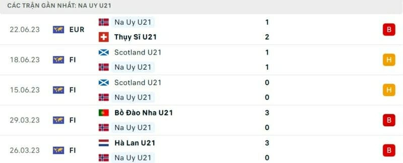 Phong độ gần đây U21 Na Uy vs U21 Pháp: