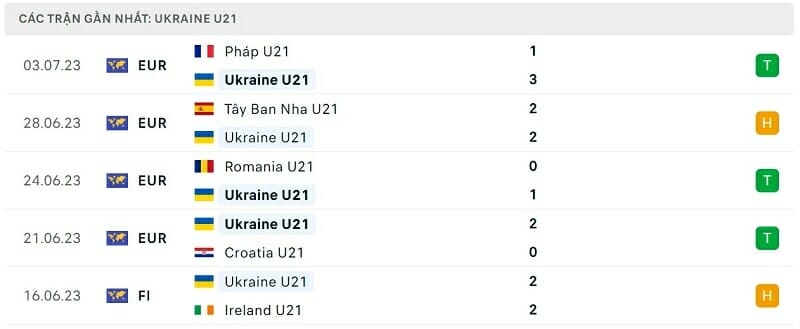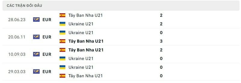 Thành tích đối đầu U21 Tây Ban Nha vs U21 Ukraine: