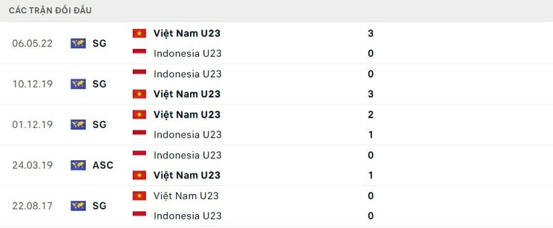 Thành tích đối đầu U23 Việt Nam vs U23 Indonesia