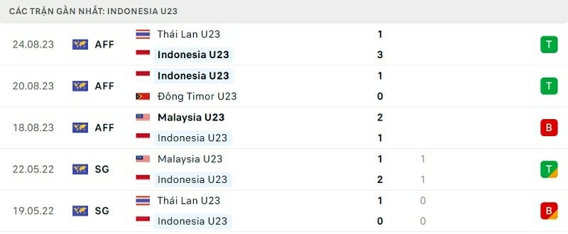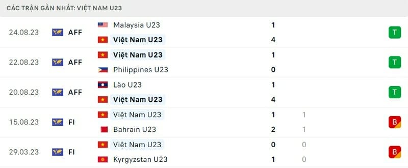 Phong độ U23 Việt Nam vs U23 Indonesia