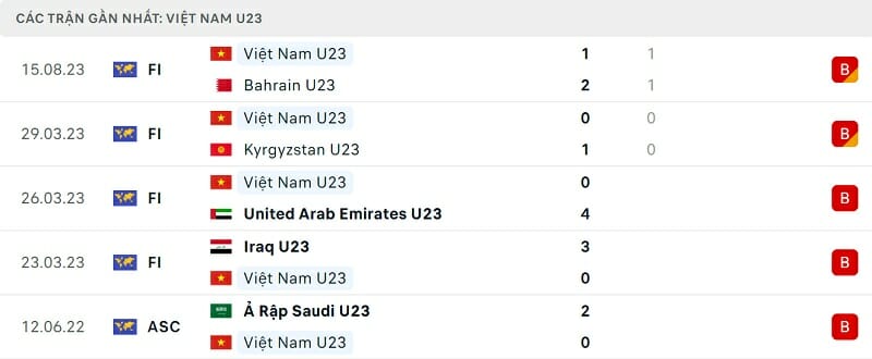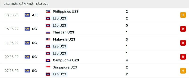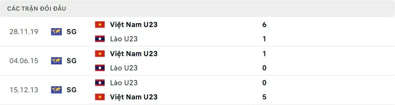 Thành tích đối đầu U23 Việt Nam vs U23 Lào