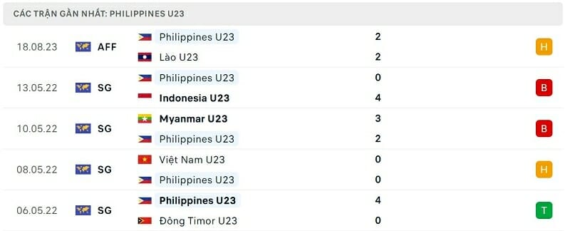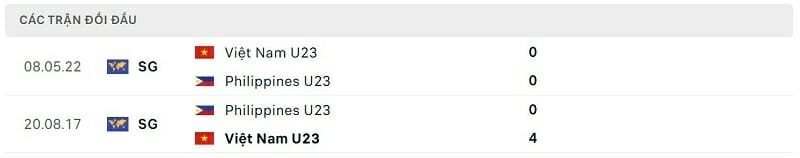 Thành tích đối đầu U23 Việt Nam vs U23 Philippines:
