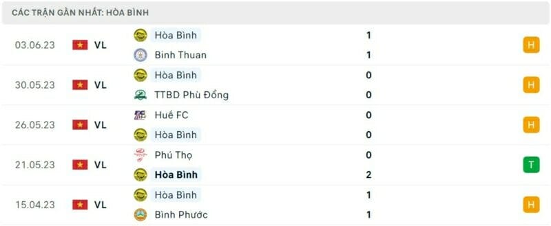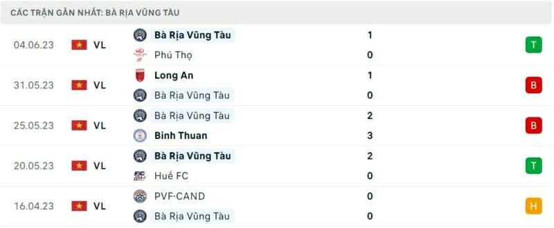 Phong độ Vũng Tàu vs Hòa Bình