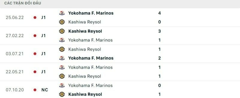 Thành tích đối đầu Yokohama F.Marinos vs Kashiwa Reysol: