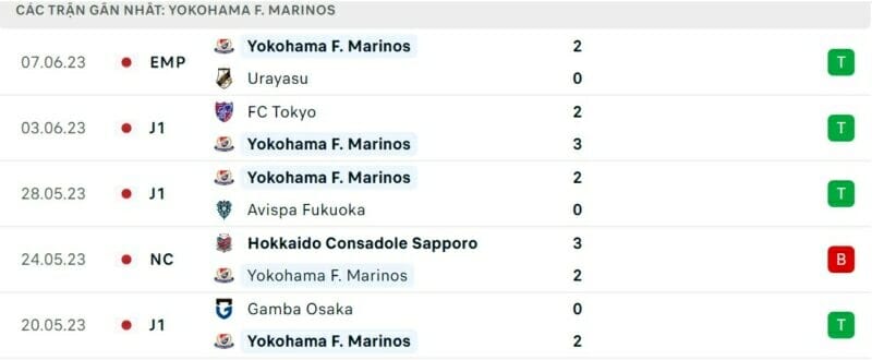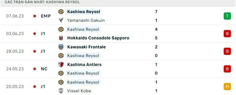 Phong độ gần đây Yokohama F.Marinos vs Kashiwa Reysol: