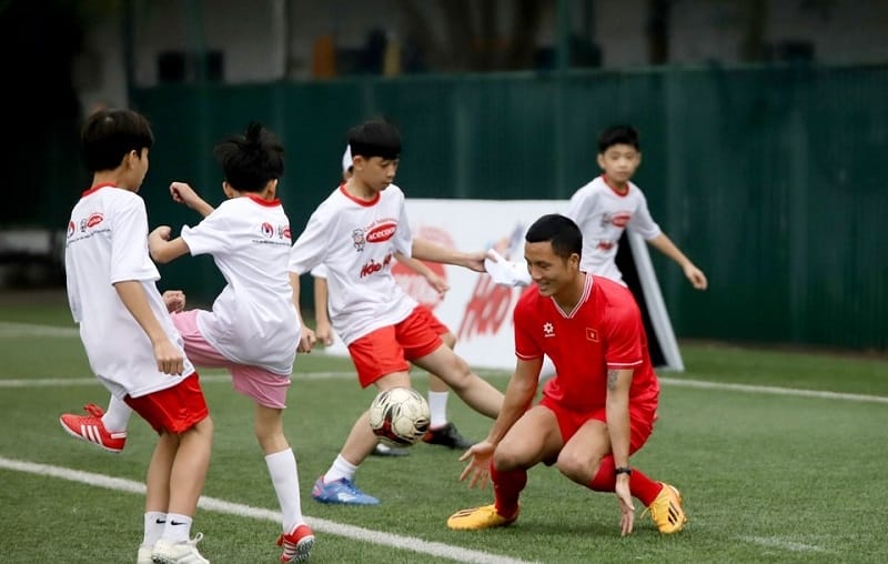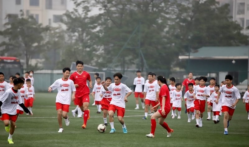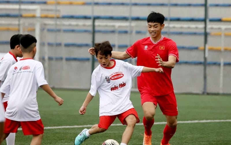 Nằm trong chuỗi hoạt động trước sự kiện lễ ký kết hợp tác giữa LĐBĐ Việt Nam và Công ty Cổ phần Acecook Việt Nam, sáng nay (14/03), tại sân FIFA Trung tâm đào tạo bóng đá trẻ Việt Nam, hoạt động giao lưu giữa một số tuyển thủ quốc gia với 100 em nhỏ đang sinh sống tại làng Trẻ em SOS Việt Nam đã được tổ chức.