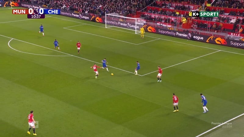Không còn sự ẻo lả và hời hợt từ bộ đôi ngôi sao có thâm niên, Man United thi đấu với quyết tâm rực cháy. Họ tích cực di chuyển và tổ chức pressing chặt chẽ, khiến The Blues nhiều thời điểm không thể triển khai bóng.