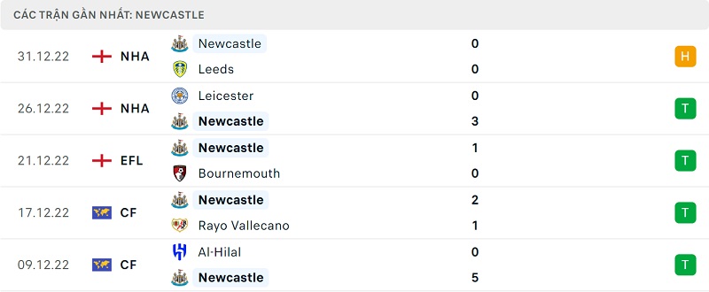 Phong độ Arsenal vs Newcastle