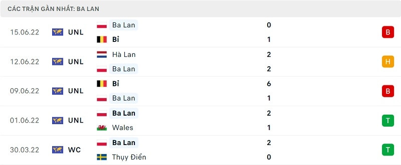 Phong độ gần đây Ba Lan vs Hà Lan: