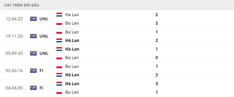 Thành tích đối đầu Ba Lan vs Hà Lan: