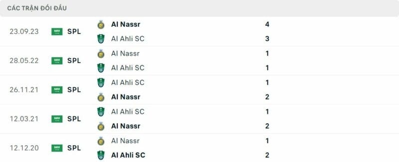Thành tích đối đầu Al Ahli vs Al Nassr