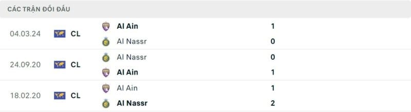 Thành tích đối đầu Al Nassr vs Al Ain: