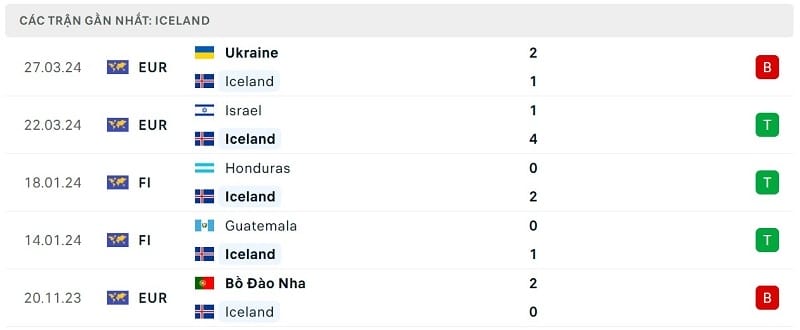 Phía bên kia chiến tuyến, ĐT Iceland đã thất bại trong việc giành vé tham dự VCK Euro 2024. Ở vòng loại, đoàn quân của Age Hareide chỉ xếp thứ 4 bảng J với tổng cộng 10 điểm. ĐT Iceland giành được 3 chiến thắng, 1 trận hòa và nhận 6 thất bại.