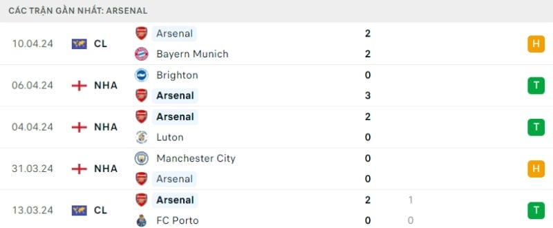 Câu lạc bộ Arsenal buộc phải có chiến thắng tại Emirates vào tối chủ nhật 14/04. Đây là mục tiêu không quá khó với The Gunners bởi họ đã bất bại 8 trận đấu gần nhất, trong đó có 6 chiến thắng. Ngoại trừ trận hòa đáng tiếc trước Bayern Munich, đoàn quân của huấn luyện viên Arteta cũng thắng tới 4/5 lần đón khách vừa qua.