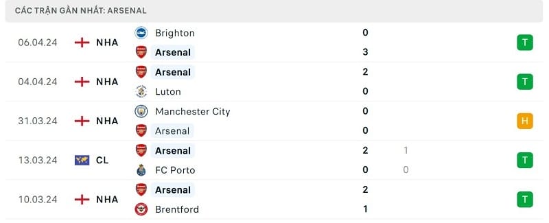 Ở trận đấu gần nhất, Arsenal đã không gặp quá nhiều khó khăn trước Brighton. Đoàn quân của HLV Mikel Arteta dễ dàng hạ gục Chim mòng biển với tỷ số 3-0, qua đó tạm vươn lên dẫn đầu Ngoại hạng Anh với tổng cộng 71 điểm. Đây cũng là bước chạy đà hoàn hảo của Arsenal cho trận lượt đi tứ kết Champions League gặp Bayern Munich.