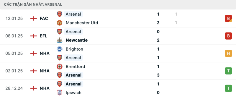 Arsenal đang lâm vào khủng hoảng với chuỗi 3 trận không thắng trên mọi đấu trường. Họ đã thua cả 2 trận gần nhất tại hai đấu trường Carabao Cup và FA Cup.