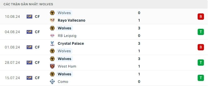 Wolves cũng trải qua vài trận giao hữu trước thềm mùa giải mới, gồm chiến thắng ấn tượng trước RB Leipzig nhưng cũng thất bại trước Crystal Palace và Rayo Vallecano.