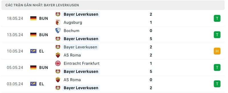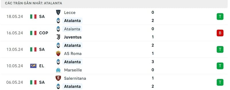 Phong độ gần đây Atalanta vs Bayer Leverkusen