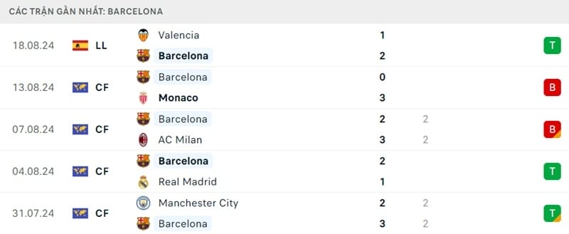 Sau 2 chiến thắng trước Manchester City và Real Madrid vào hè 2024, Barca nhận liên tiếp 2 thất bại khi gặp AC Milan lẫn AS Monaco. Tinh thần thuyên giảm ấy vừa nhận cú hích nhờ chiến thắng Valencia.