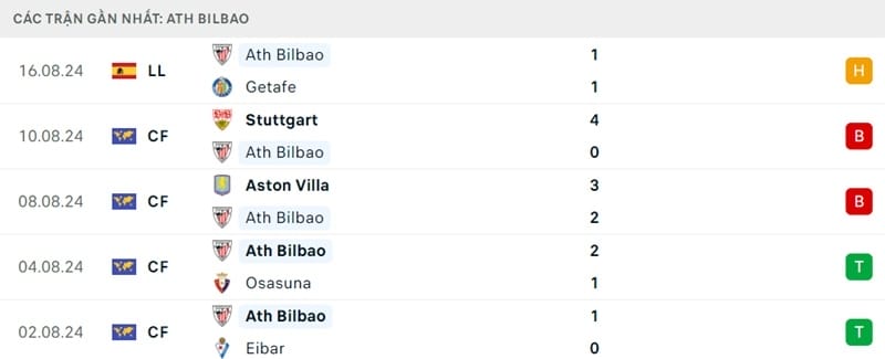 Phong độ Athletic Bilbao:
