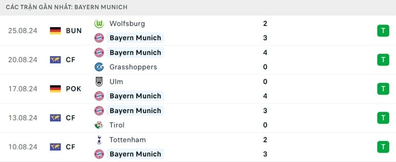 Phong độ Bayern Munich