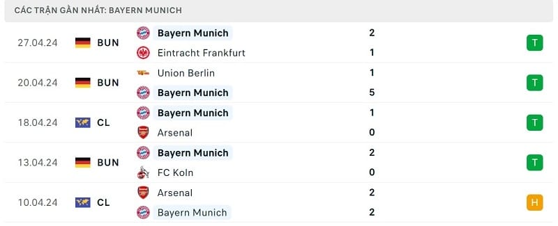 Phong độ gần đây Bayern Munich vs Real Madrid