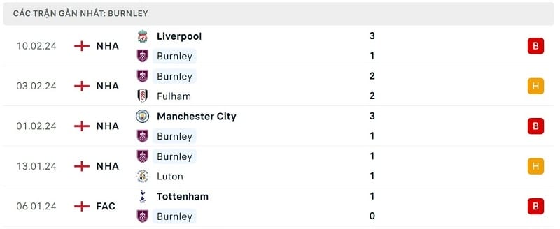 Phong độ thời gian gần đây của đội chủ sân Turf Moor vô cùng tệ hại. Burnley hiện có chuỗi 7 trận liên tiếp không biết đến mùi chiến thắng trên mọi đấu trường (5 thua, 2 hòa). Lần cuối cùng thầy trò HLV Vincent Kompany giành được 3 điểm trọn vẹn đã là từ ngày 27/12 năm ngoái khi đánh bại Fulham với tỷ số 2-0.