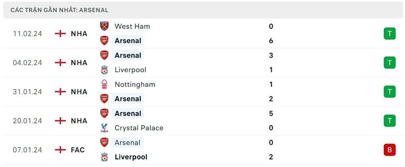 Phía bên kia chiến tuyến, trái ngược hoàn toàn với Burnley, Arsenal đang thi đấu cực kỳ thăng hoa kể từ khi bị Liverpool loại khỏi FA Cup. Cụ thể, Pháo thủ đã giành 4 chiến thắng liên tiếp tại Ngoại hạng Anh, qua đó thu hẹp khoảng cách với ngôi đầu của chính The Kop xuống còn 2 điểm.