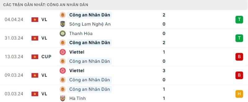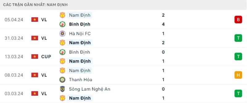 Phong độ gần đây CAHN vs Nam Định