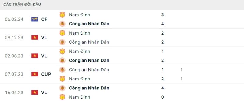 Lịch sử đối đầu đang nghiêng về đội chủ nhà, khi bất bại cả 5 trận gần nhất đụng độ Nam Định. Cụ thể, CLB CAHN đã thắng 3 và hòa 2 (tính trong 90 phút chính thức). Đội bóng ngành công An đã chơi áp đảo Nam Định FC trên sân nhà Hàng Đẫy, khi đại thắng 4-0 ở lượt đi V.League 2023. Nhìn chung, giới chuyên môn ít nhiều đánh giá thầy trò huấn luyện viên Kiatisak cao hơn ở trận đấu này.