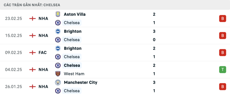 Chelsea chỉ thắng 1 trong 5 trận gần nhất trên mọi đấu trường. Họ thậm chí đã toàn thua cả 3 trận đấu gần nhất.