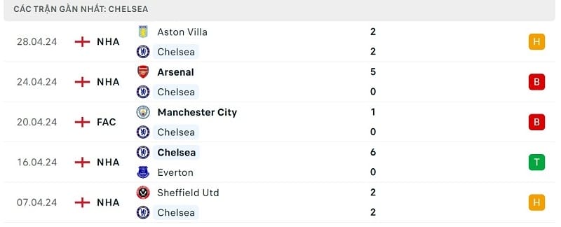 Ở trận đấu gần nhất, Chelsea đã phải rất vất vả mới có được kết quả hòa trước Aston Villa. Đoàn quân của HLV Unai Emery vươn lên dẫn trước 2-0 nhờ pha phản lưới nhà của Marc Cucurella cùng bàn thắng của Morgan Rogers. Sang hiệp hai, Chelsea thể hiện tinh thần chiến đấu kiên cường ghi gỡ hòa 2-2.
