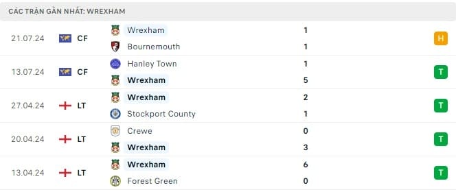 Phong độ Wrexham