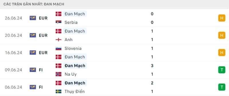 Phong độ của ĐT Đan Mạch ở mức chấp nhận được. Cụ thể, Những chú lính chì đã bất bại 7 trận gần đây, nhưng họ chỉ giành được 3 thắng lợi. Tại Euro 2024, đoàn quân của HLV Kasper Hjulmand vẫn chưa có thắng lợi nào. Họ lần lượt hòa Slovenia (1-1), Anh (1-1) và Serbia (0-0). Chuyên gia cho rằng Đan Mạch khó có thể tạo ra bất ngờ trước ĐT Đức.