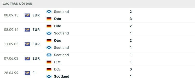 Thành tích đối đầu Đức vs Scotland