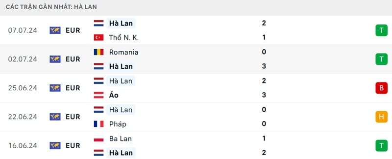 7 trận gần nhất, Hà Lan chỉ thua 1, thắng 5 và hòa 1. Đó là thất bại 2-3 trước Áo khiến thầy trò Ronald Koeman đứng thứ 3 vòng bảng.