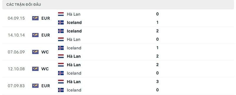 Thành tích đối đầu Hà Lan vs Iceland
