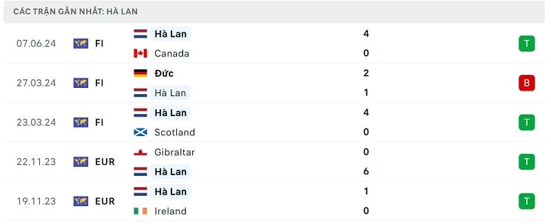 Phong độ gần đây Hà Lan vs Iceland