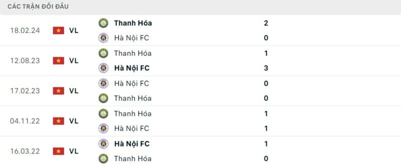 Thành tích đối đầu Hà Nội vs Thanh Hóa