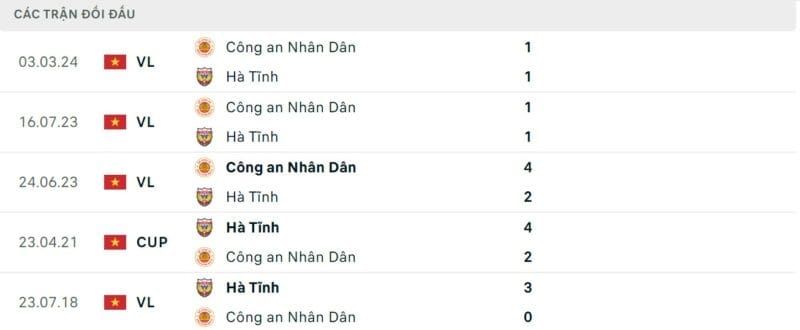 Thành tích đối đầu Hà Tĩnh vs CAHN