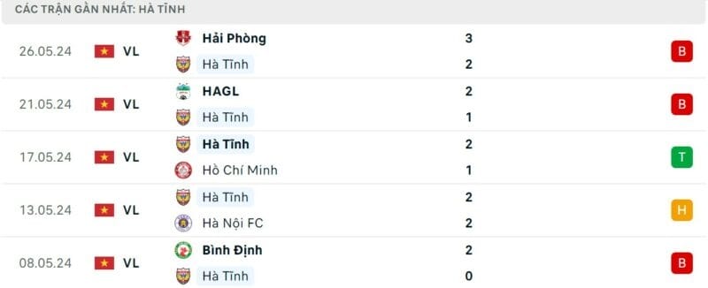 Phong độ gần đây Hà Tĩnh vs CAHN