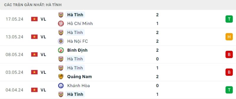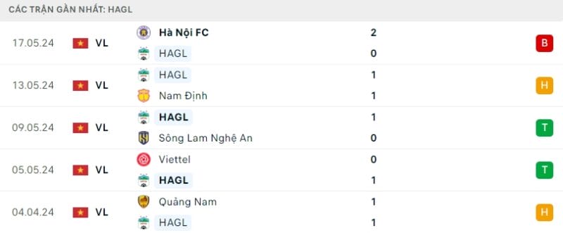 Phong độ gần đây HAGL vs Hà Tĩnh